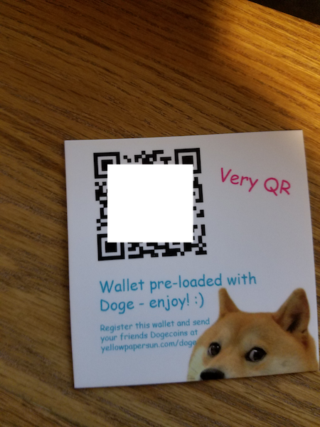 each contained a small number of Dogecoins to introduce users to the site. These cards could be scanned using a phone camera or webcam.
