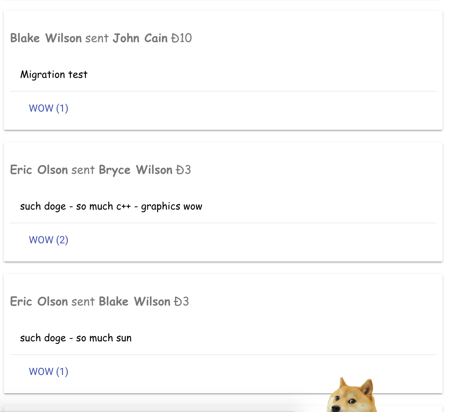 containing each user's balance. A single private key is used to sign all transactions which occur within the site. Users can send Dogecoins in